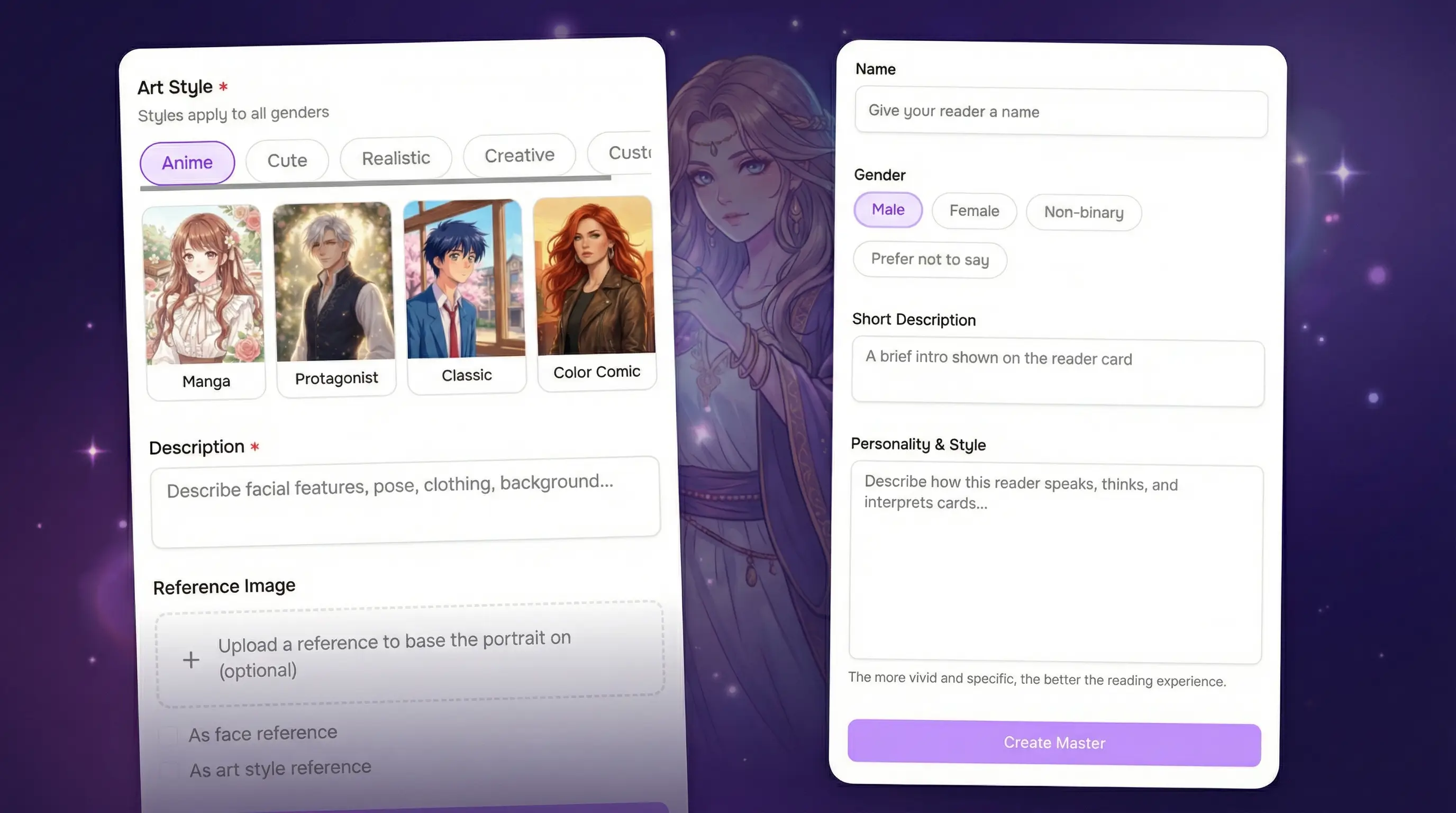 性格や読み方のスタイルを設定して、AIでオリジナルアバターも作成できます。